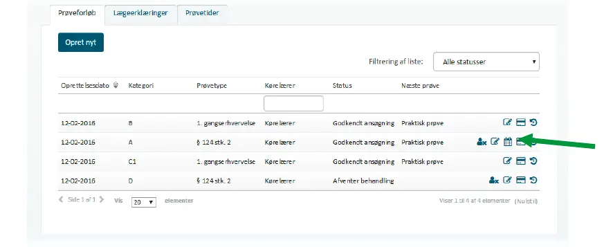 1. Find den konkrete elev du skal booke en teoriprøve til på koreprovebooking.dk og tryk på kalenderikonet.
