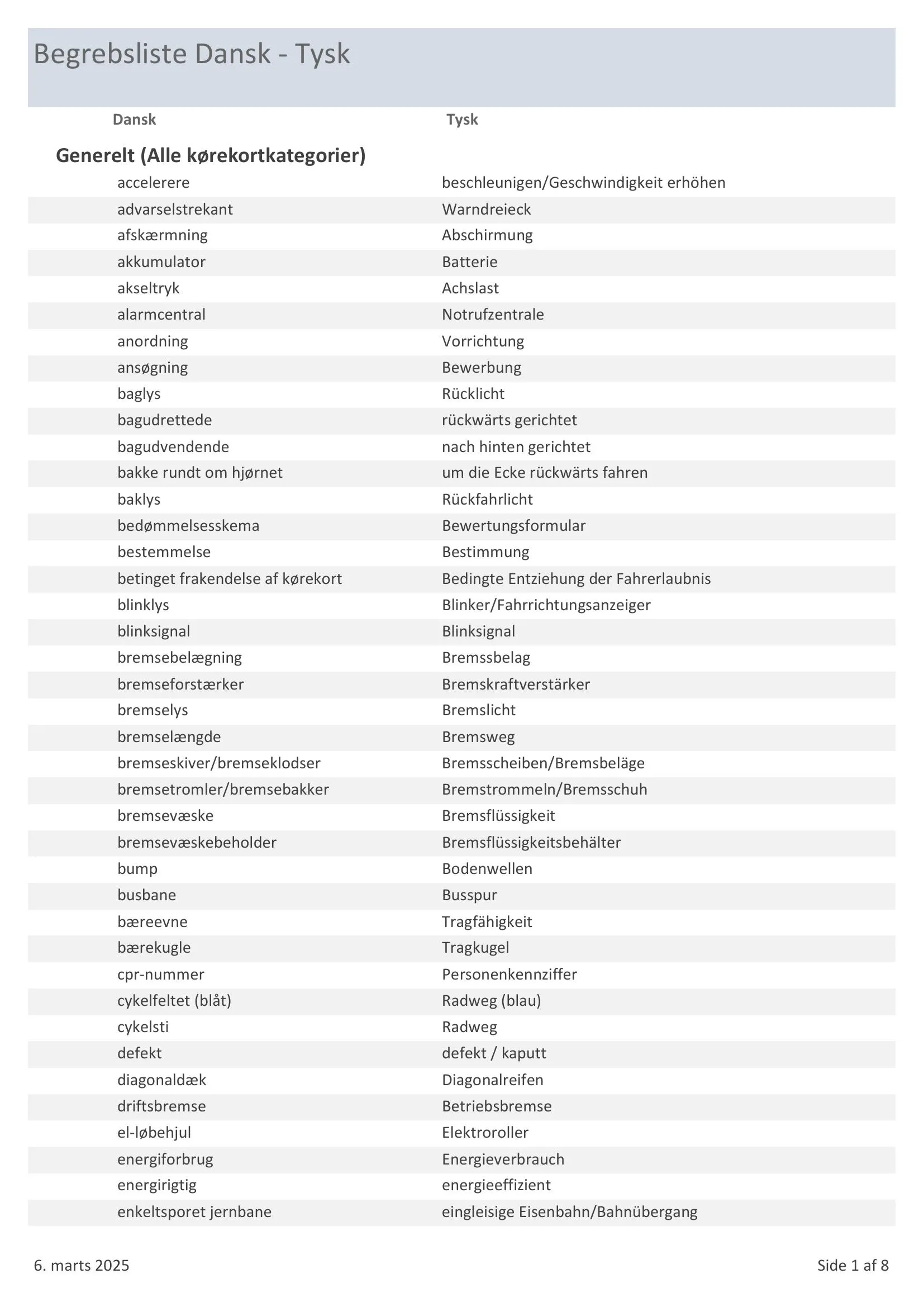 | Brake drums/shoes | Bremsetromler/bremsebakker | Driving license categories |