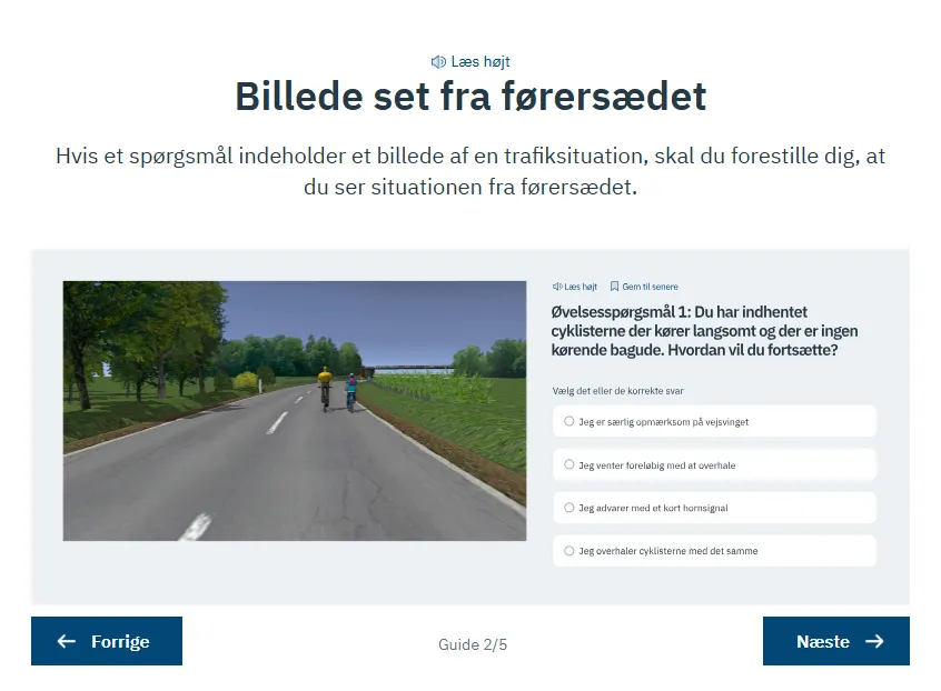 - Mindst tre af lektionerne skal gennemføres på offentlig vej og må ikke være lektioner i kørsel på motorvej
