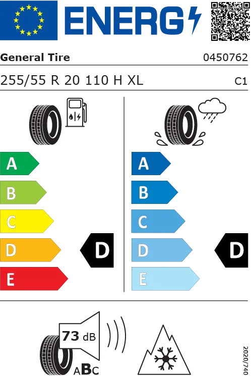 Dækmærket angiver bl.a. dækkets størrelse, vådgrebsklasse, støjklasse og evt. piktogram for vinterdæk med "3PMSF"-mærkning.